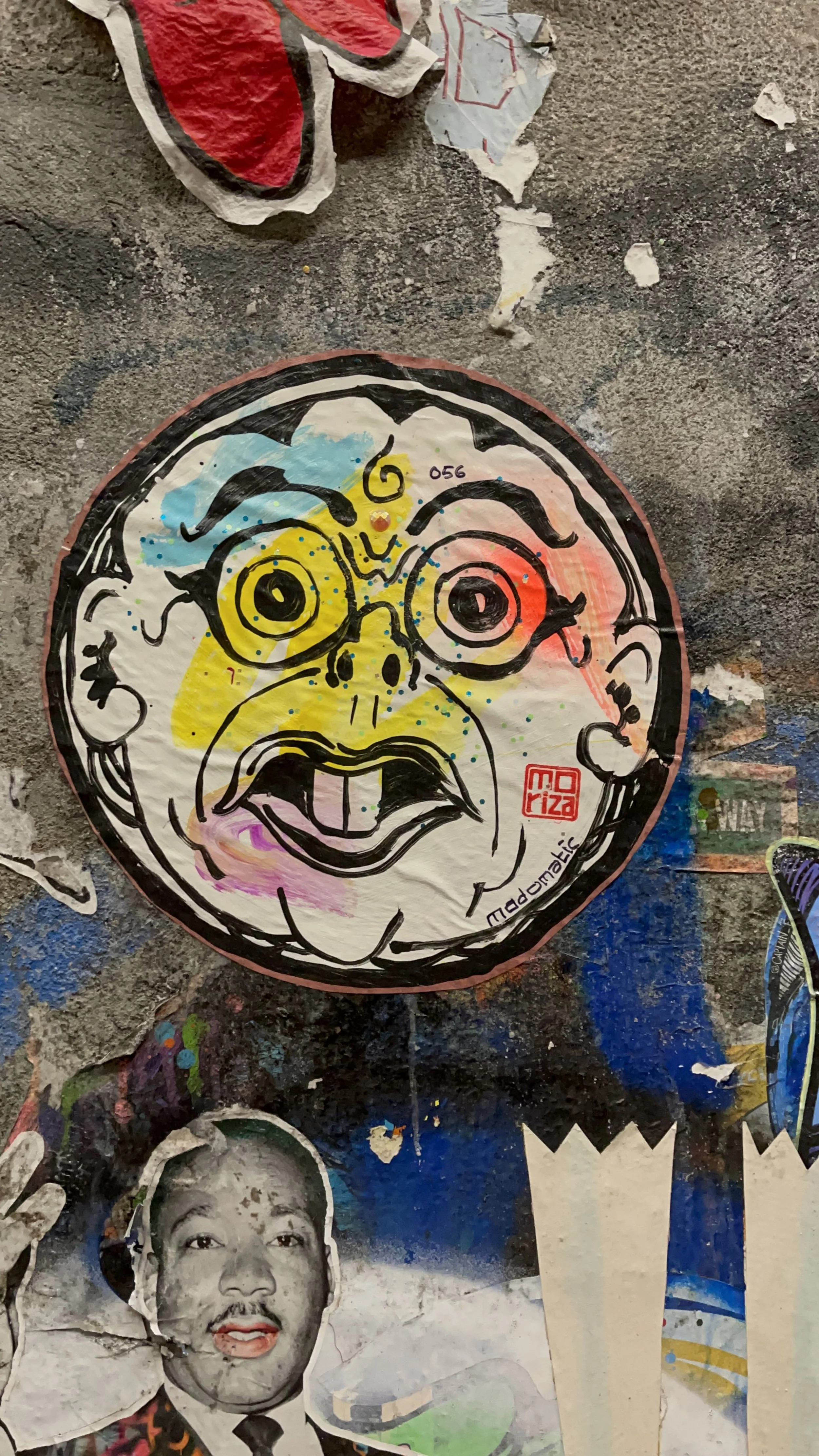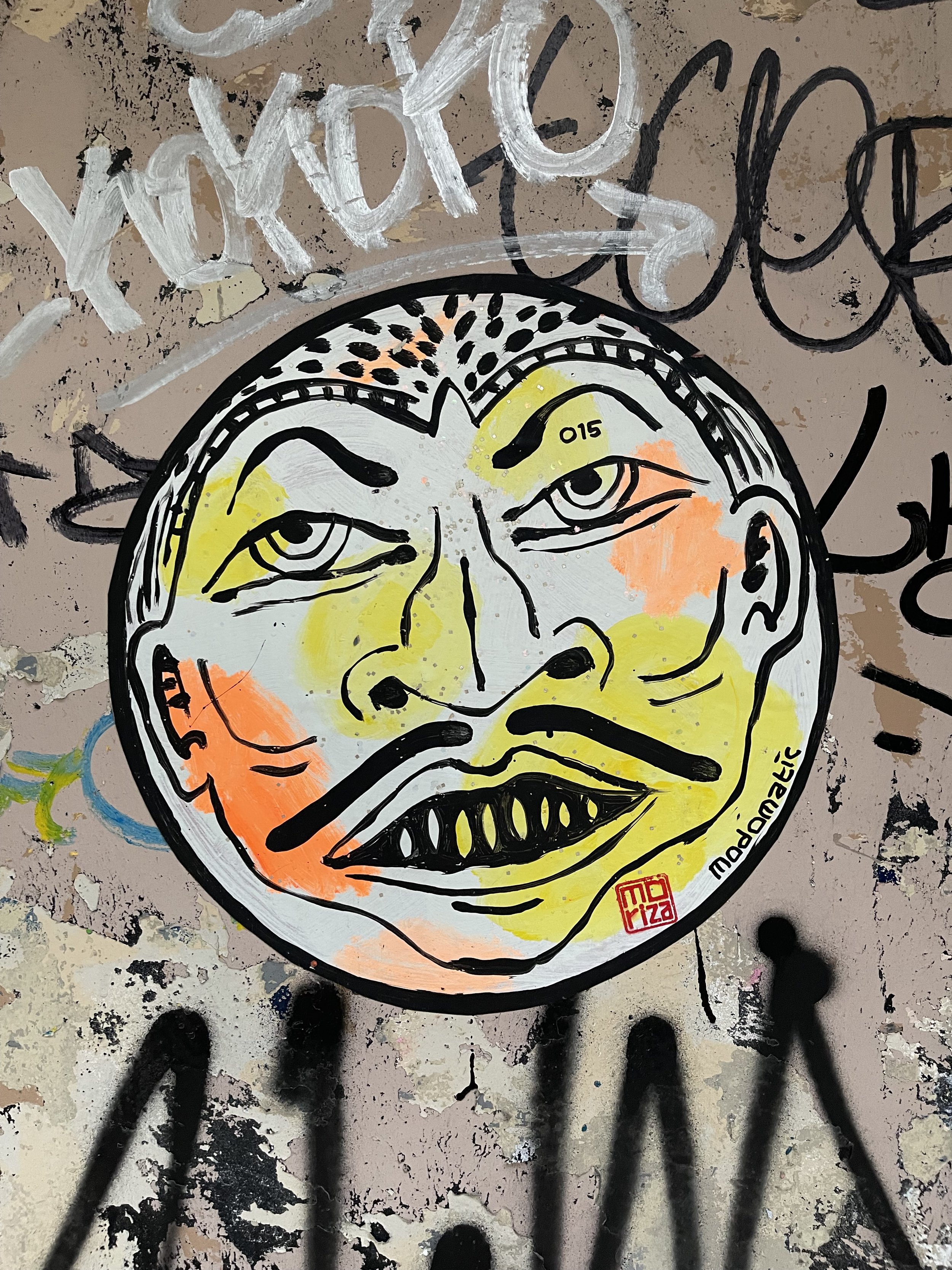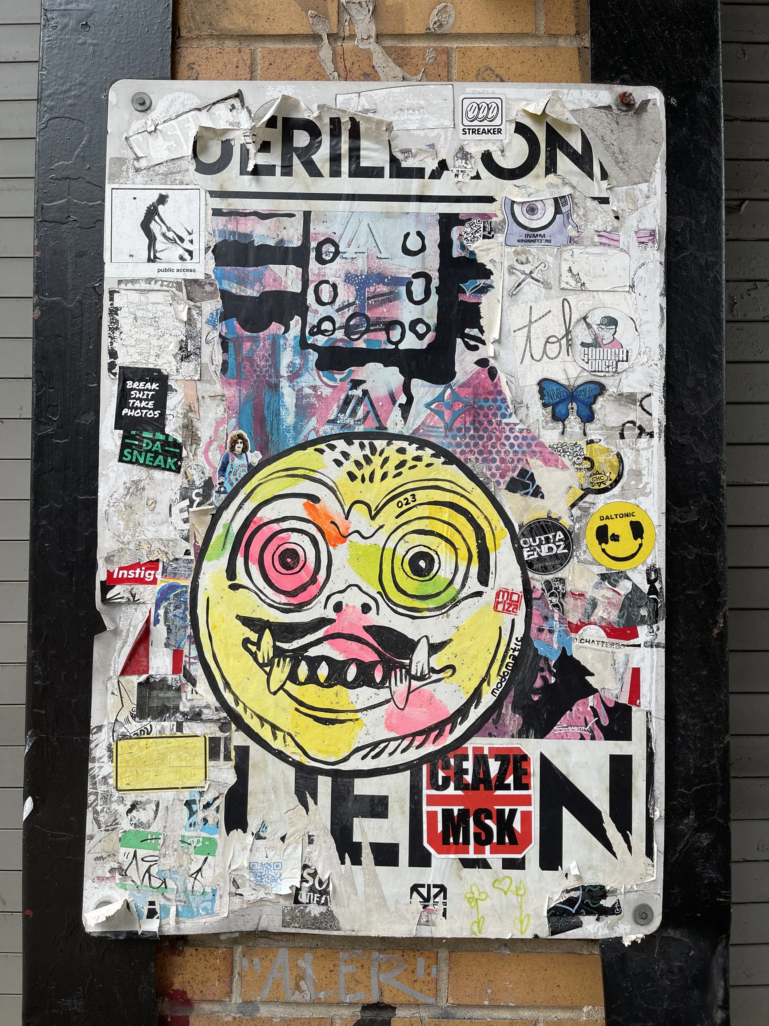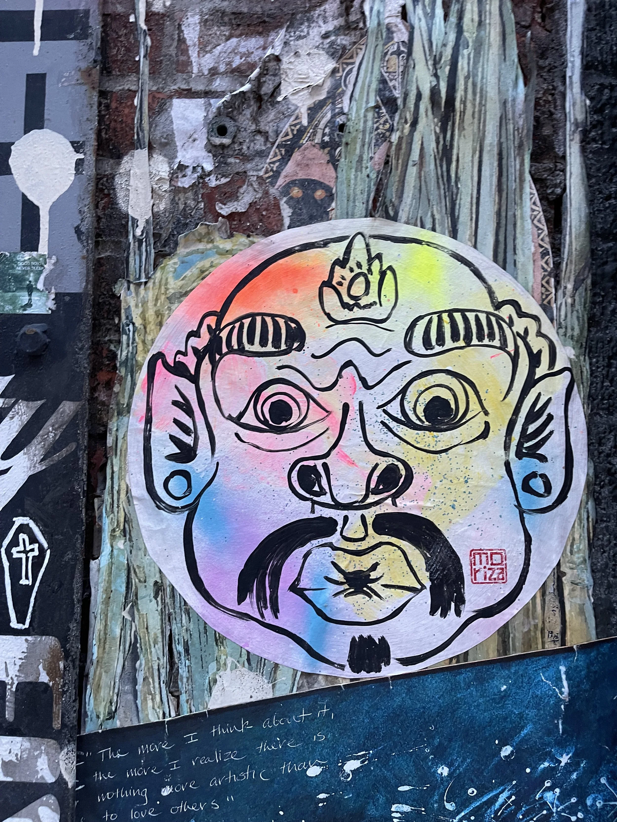 Modomatic’s Guarding Faces with unsleepy eyes. Barong, Kirtimukha, and Drishti Gombe reborn as wild, round, neon faces wheat-pasted across downtown streets. They stare, they swallow evil, they never blink.
